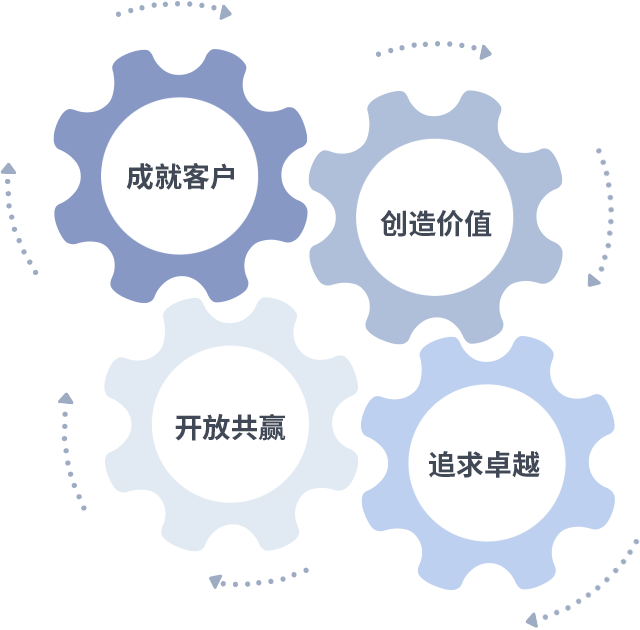 成就客户是一切决策的出发点,创造价值是衡量所有工作的标准,追求卓越是伟德国际victor1946做事做人的态度,开放共赢是伟德国际victor1946的格局也是最终的结果。价值观的齿轮环环相扣,推动着组织里的每个人不断向前。